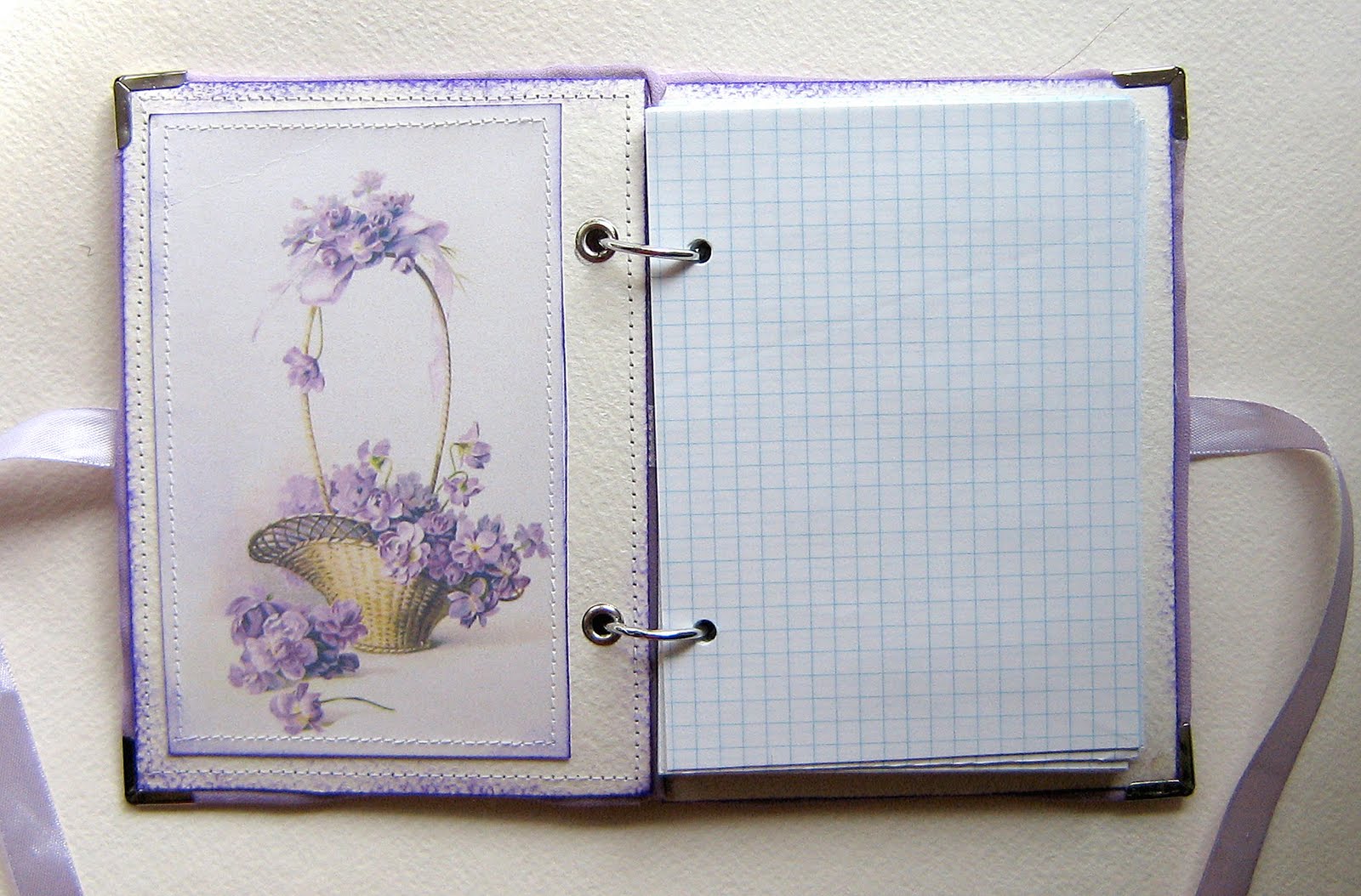 Этот сиреневый блокнотик я сделала уже давно, оставались мелкие недоделки. Подарила маме. Она очень любит сиреневый цвет, для нее специально ткань на обложку искала.Блокнотик на кольцах, листики менять можно.