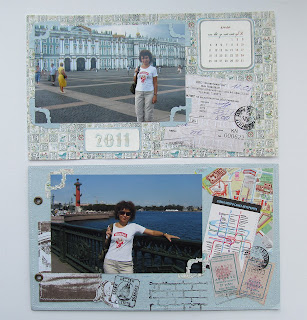 Коротко про альбом. Размер нестандартный 15х25см. Про поездку в Питер летом 2011 года. Поездка была коротенькая, всего 5 дней, но очень богатая событиями. Вот о них, да и вообще, о моем знакомстве с Питером будет этот альбом.