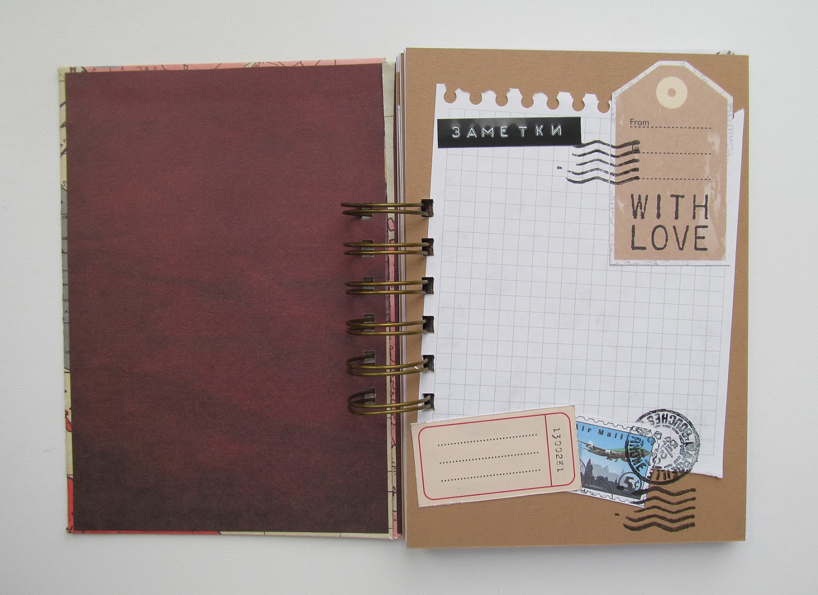 Вот как-то так. И сделано с расчетом, что его обладатель сам приклеит всякие карты, билетики и прочие памятные штучки. Это первый, строго не судите))
