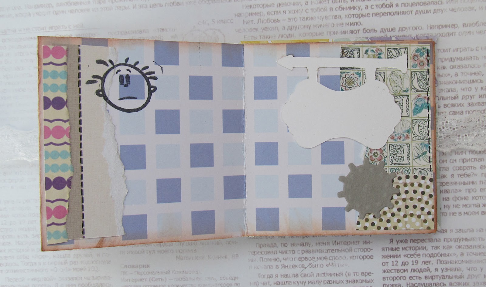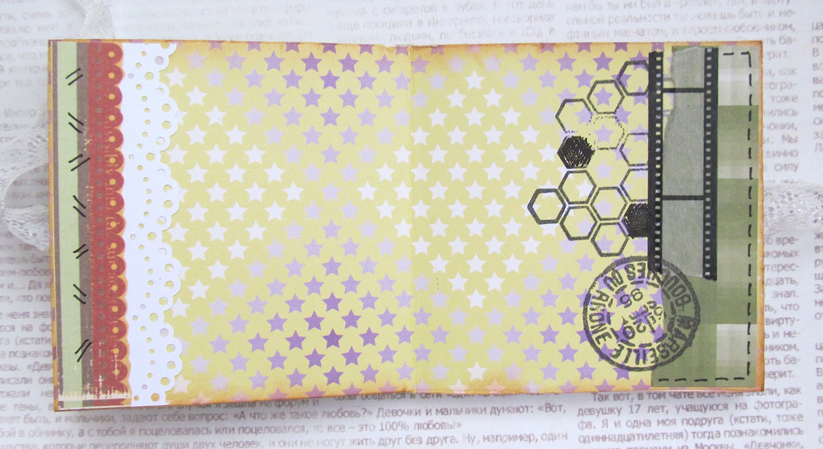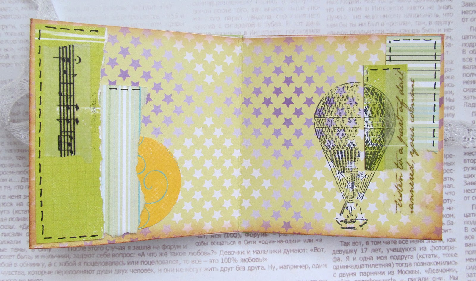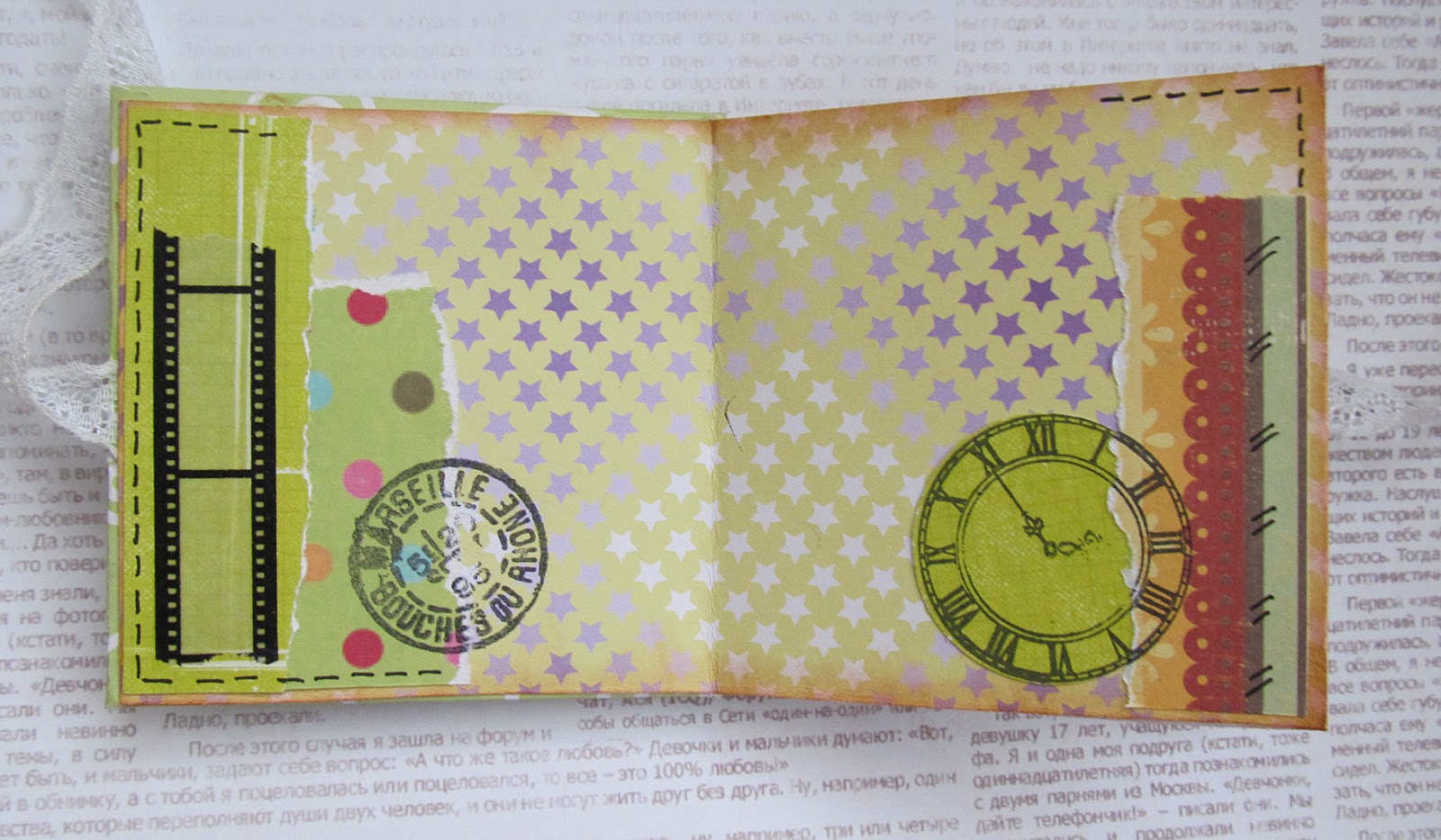 Обязательные элементы этого задания меморабилия и штампы. Штампов у меня много. А в качестве меморабилии страничка из "Таймс" и ненастоящие билетики. Всё настоящее будут собирать путешественники, которые возьмут этот тревел с собой.
