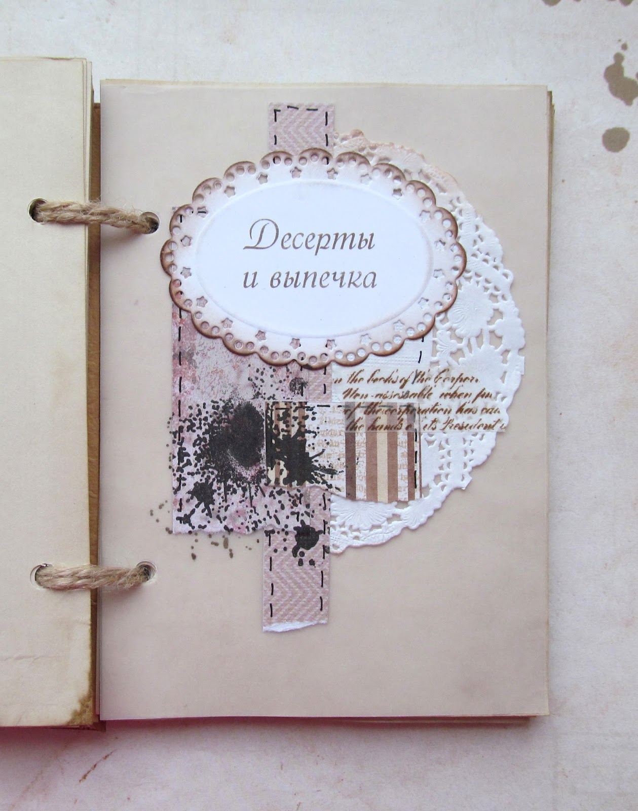 Ой, не люблю я, когда просят сделать "точно такое же". Неинтересно. Поэтому сделала нечто похожее, но всё-таки новое. Кулинарный блокнотик с кофейными страничками и разделителями. И толстенький, по просьбе заказчицы. Страничек много.