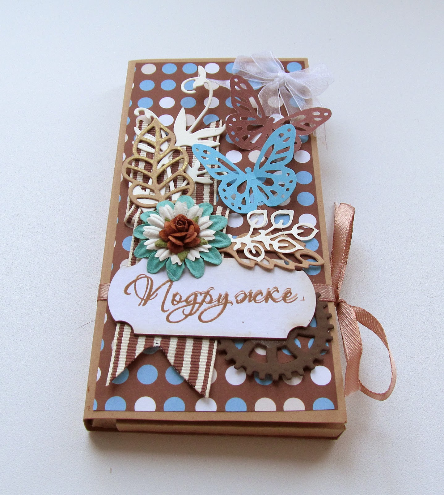 Теперь о предпочтениях по стилям. А не знаю. Могу только сказать, что не очень получается C&S. У меня всегда всего много, люблю многослойность. Возможно шебби... Хочу подружиться со стимпанком... Чаще всего делаю открытки, блокноты, обложки на паспорт. Странички и альбомы редко. Ноги не доходят фотки напечатать. А альбом давно хочу.