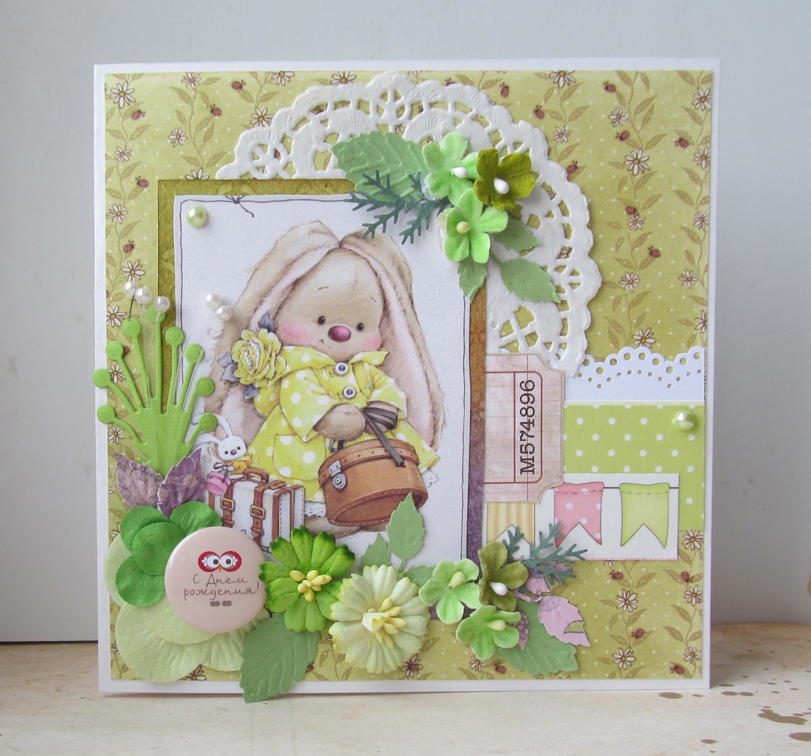 Продолжаю делать зайковые открытки. Бумага пока еще не кончилась)) Встречайте девочку.