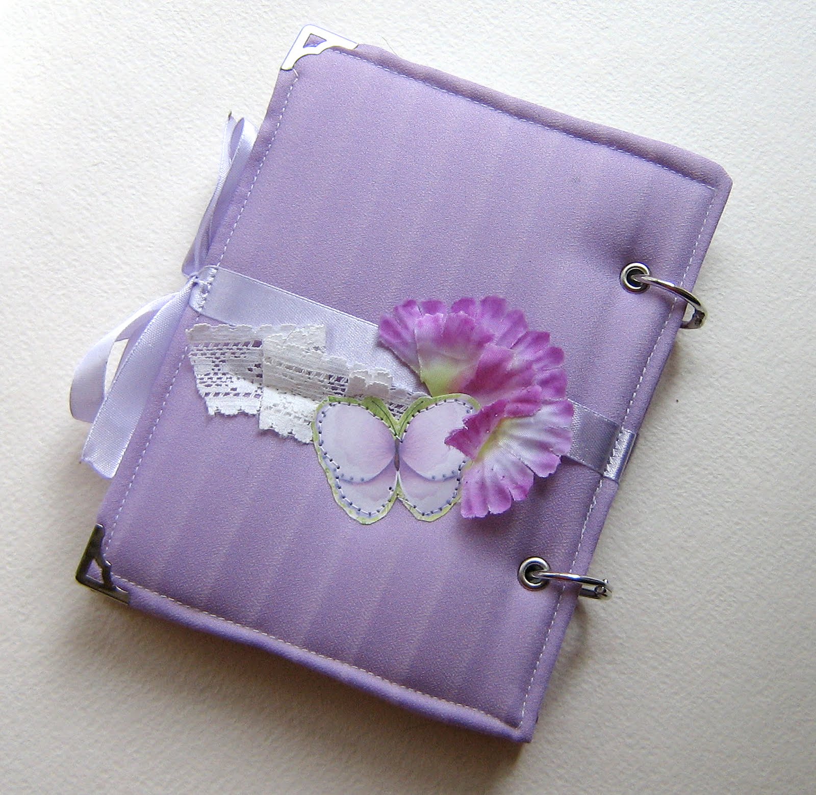 Этот сиреневый блокнотик я сделала уже давно, оставались мелкие недоделки. Подарила маме. Она очень любит сиреневый цвет, для нее специально ткань на обложку искала.Блокнотик на кольцах, листики менять можно.